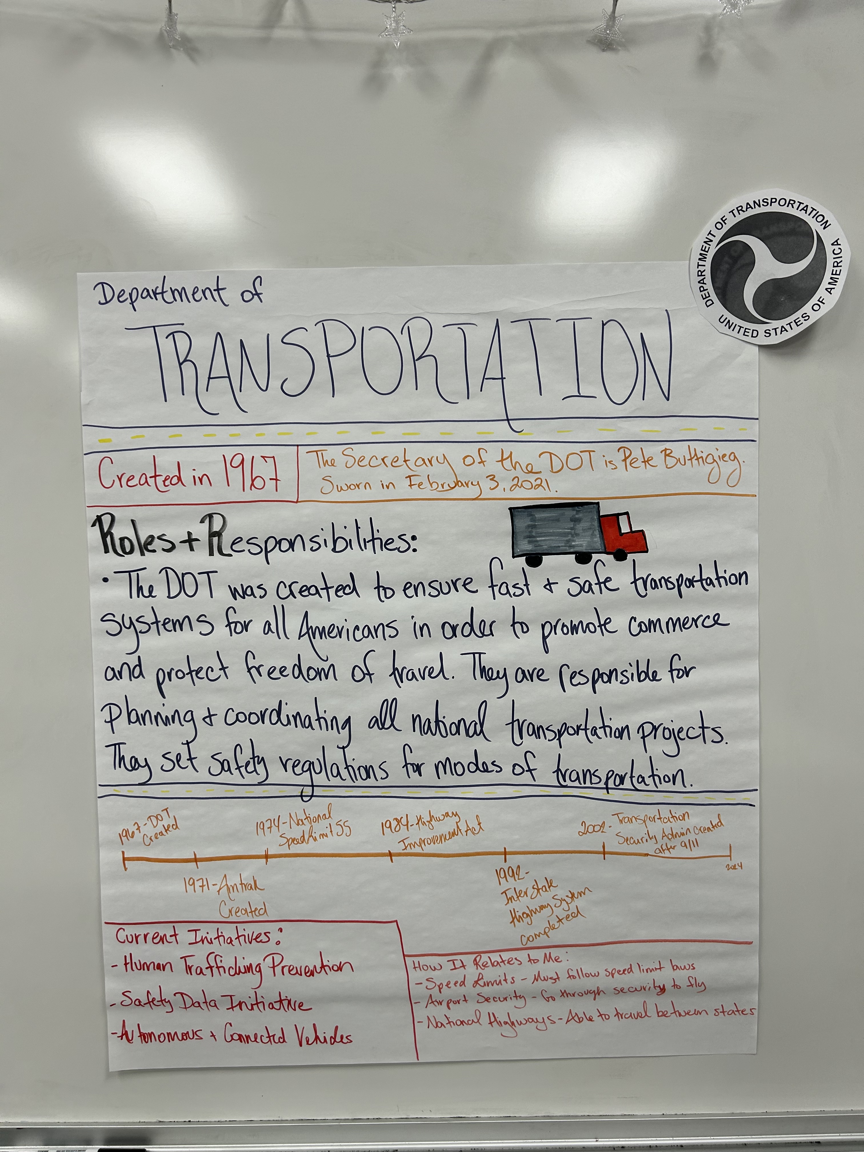 Students watch a video about the President’s Cabinet, then create an anchor chart about one executive department.
