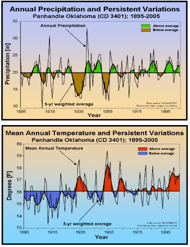U.S. Department of Agriculture. (n.d.). Variations of annual precipitation and air temperature in Oklahoma, 1895 – 2005. https://www.ars.usda.gov/ARSUserFiles/30700510/CliVarOK05.pdf